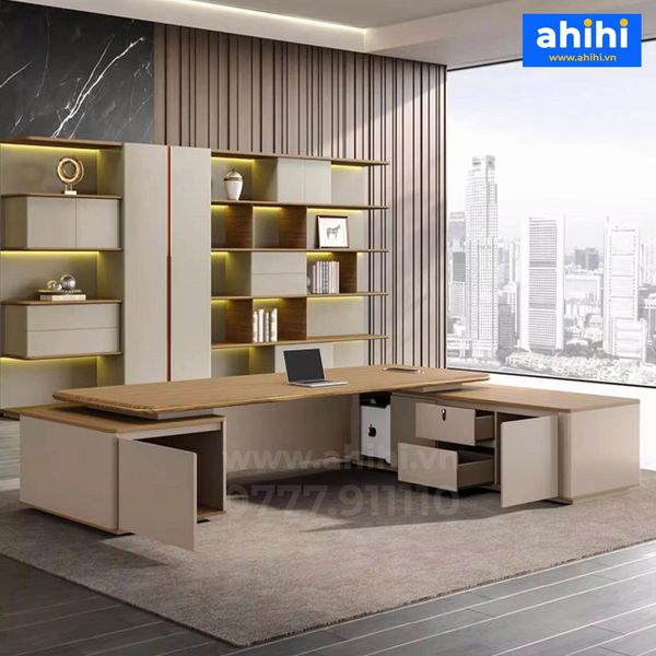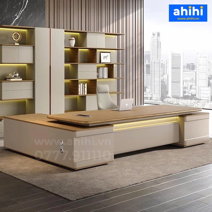 Bàn giám đốc Ahihi102 là lựa chọn hoàn hảo cho không gian làm việc của lãnh đạo hiện đại. Với thiết kế tinh tế, chất liệu gỗ cao cấp và tông màu hài hòa, mẫu bàn này mang đến sự sang trọng và đẳng cấp cho phòng giám đốc.