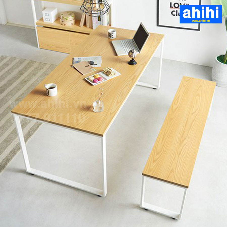 • Mô tả: Đây là mẫu bàn làm việc đơn phổ biến nhất, kết hợp giữa mặt bàn gỗ công nghiệp cao cấp và hệ thống chân sắt hiện đại.