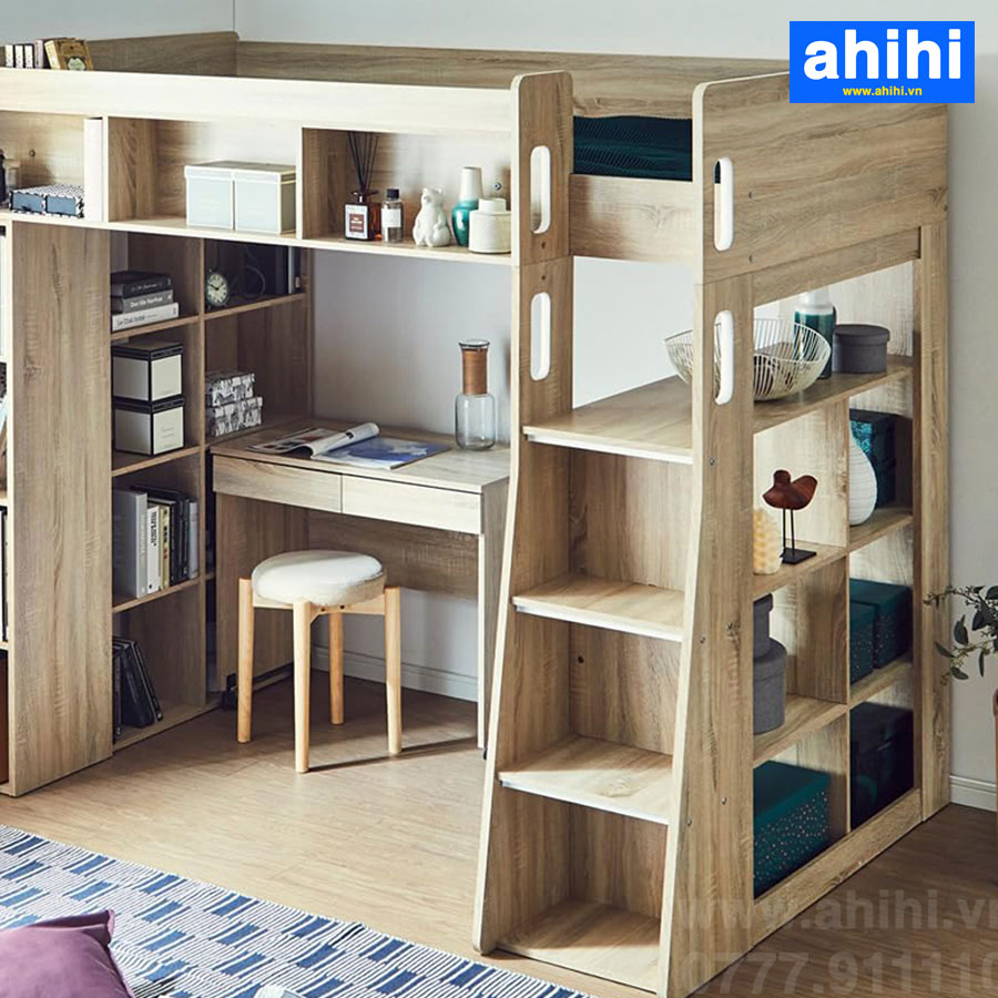 Một căn phòng nhỏ hẹp có thể khiến người sử dụng cảm thấy bức bí, ngột ngạt, khiến tâm lý luôn trong tình trạng căng thẳng. Nhưng nay, với mẫu giường tầng đa năng này, mọi vấn đề đã được giải quyết. Được tích hợp nhiều ngăn tủ nhỏ đựng đồ, kệ sách… giúp cho không gian phòng ngủ của bạn trở nên rộng rãi, ngăn nắp hơn.