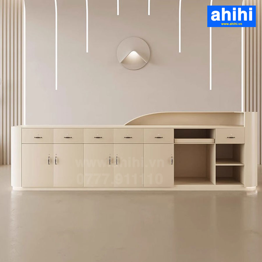 Bạn có thể thoải mái lựa chọn quầy lê tân văn phòng đẹp, quần lễ tân công ty hay quầy lễ tân khách sạn đẹp mà không mất quá nhiều thời gian. Đa dạng về thiết kế, mẫu mã từ những thiết kế đơn giản hiện đại đến cổ điển sang trọng. Bên cạnh đó, ahihi cung cấp dịch vụ thiết kế quầy lễ tân theo yêu cầu nên nhu cầu thay đổi kích thước, màu sắc, điều chỉnh thiết kế như ý muốn sẽ được áp ứng trọn vẹn.