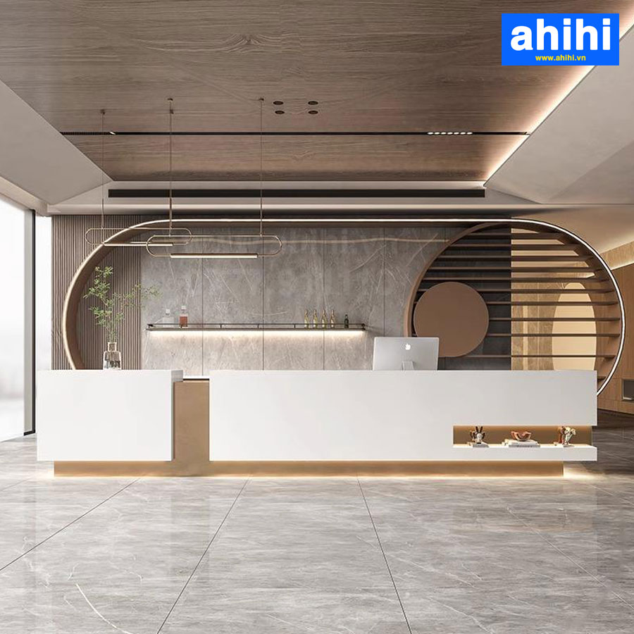 Nếu bạn đang muốn sở hữu mẫu quầy lễ tân đẹp hiện đại thì ahihi chính là địa chỉ cung cấp lý tưởng dành cho bạn. Đừng quên trang trí quầy lễ tân kết hợp cùng những mẫu ghế quần lễ tân đẹp để không gian tiếp đón khách của doanh nghiệp bạn thêm phần chỉn chu, sang trọng. Lý do bạn nên chọn bàn lễ tân tại ahihi