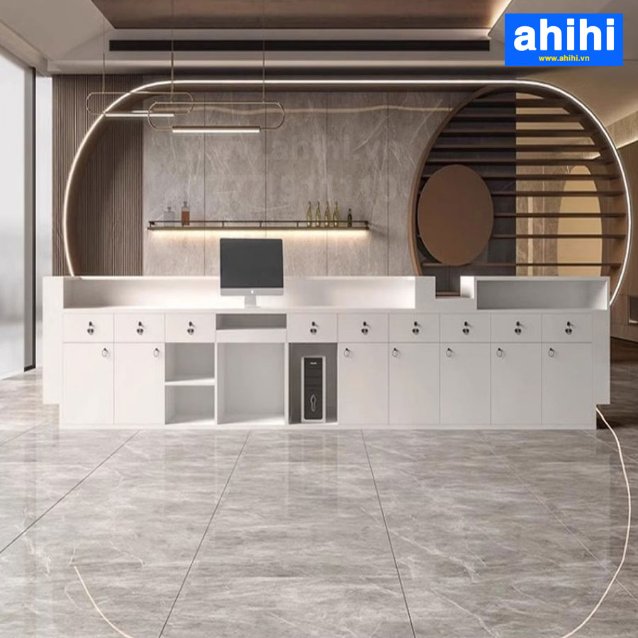 - Quầy lễ tân ahihi có nhiều mẫu mã, màu sắc khác nhau để bạn lựa chọn, phù hợp với mọi sở thích và không gian nội thất.