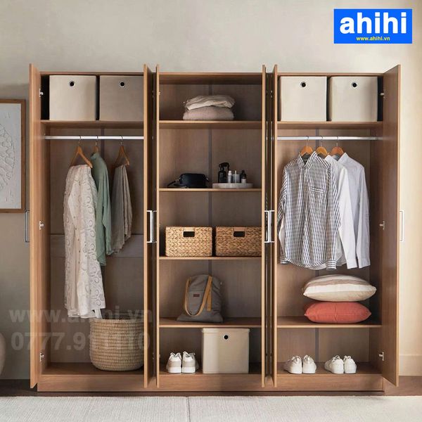 - Hộc/Buồng riêng: Một số tủ quần áo ahihi lớn còn có buồng riêng cho giày dép, vali, hoặc các vật dụng cồng kềnh khác, tối ưu hóa mọi ngóc ngách lưu trữ.