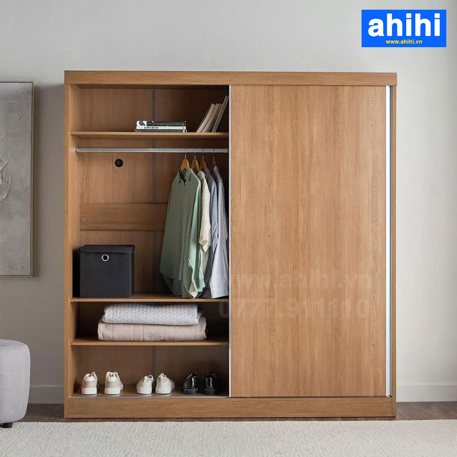 • Ưu điểm: Tiết kiệm không gian tối đa vì không cần khoảng trống để mở cánh, lý tưởng cho phòng ngủ nhỏ hoặc không gian hẹp. Mang lại vẻ hiện đại, gọn gàng. Hệ thống ray trượt của ahihi được lựa chọn kỹ càng, đảm bảo hoạt động mượt mà, bền bỉ.