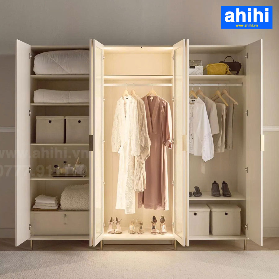 - Hộc/Buồng riêng: Một số tủ quần áo ahihi lớn còn có buồng riêng cho giày dép, vali, hoặc các vật dụng cồng kềnh khác, tối ưu hóa mọi ngóc ngách lưu trữ.
