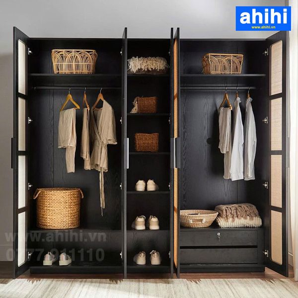 - Hộc/Buồng riêng: Một số tủ quần áo ahihi lớn còn có buồng riêng cho giày dép, vali, hoặc các vật dụng cồng kềnh khác, tối ưu hóa mọi ngóc ngách lưu trữ.
